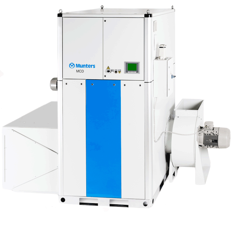 Reliable and robust, the Munters MCD Series comprises stand-alone desiccant dehumidifiers with Munters High Performance SilicaGel rotor. It meets industrial and commercial requirements for effective humidity control, energy efficiency and outstanding performance.