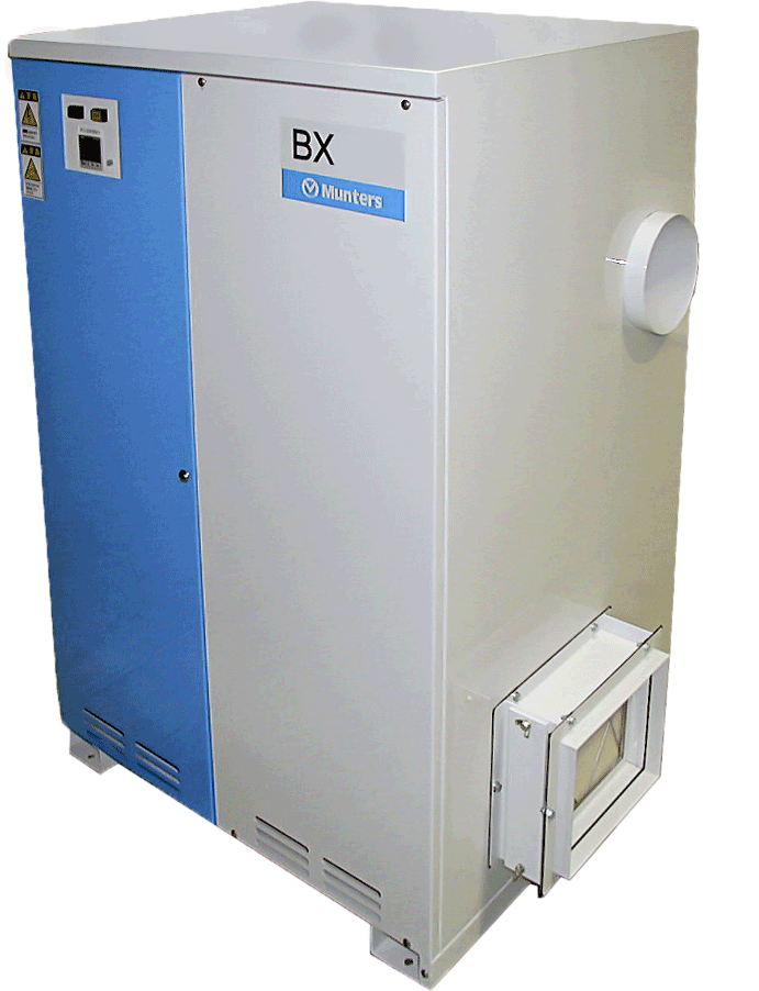 The Munters BX dehumidifier is a high-performance solution for reducing humidity levels. Its compact footprint makes it an ideal choice for applications where space is at a premium. This energy-efficient, stand-alone dehumidifier is easy to install, operate and maintain.