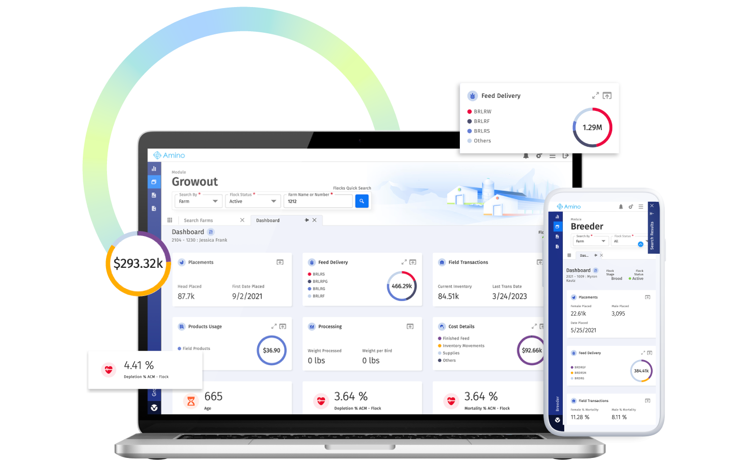Track every aspect of your bird growout operations seamlessly with Amino. Monitor weight gain, compare breed performance to standards, and easily track Feed Conversion (FCR) by house. Amino's powerful features, including built-in AI capabilities, enable you to calculate uniformity and accurately predict live haul catch schedules. Don't miss a single detail and optimize your bird growout operations with Amino from MTech Systems.