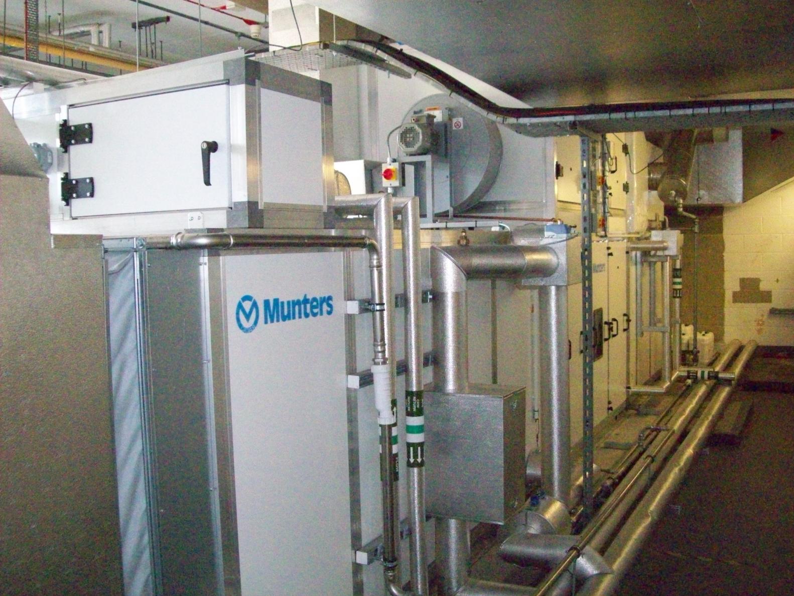 QinetiQ is a world leader in providing technology-based independent advice and support to customers in the Aerospace, Defence and Security industry. QinetiQ’s Power Sources Research and Development team, based in the UK, works with a wide range of industry and academic partners in developing advanced battery systems. To enhance their capability, QinetiQ tasked Munters to design an air treatment system to achieve low dewpoint in the battery production dry rooms whilst also reducing their existing energy consumption and carbon emissions. And here’s how Munters, the experts in climate control, achieved it. Background The production of advanced battery systems such as lithium-ion batteries requires very dry conditions. The components are extremely moisture sensitive and will quickly react with the smallest amount of moisture from the air. In fact, if conditions are not strictly maintained, moisture-related damage and deterioration can occur in minutes. With advancements in technology and the need to reduce energy consumption, QinetiQ’s challenge was to deliver a reliable air treatment system capable of maintaining performance of the existing system but using less energy. So Munters designed a replacement solution that would achieve the lower dewpoint conditions while still maintaining operating efficiencies. The main objectives of the replacement system were to: *Achieve and maintain a dewpoint of between -25°C dpt and -40°C dpt (depending on operational requirements) *Reduce energy consumption to achieve payback within 3 years *Consistently maintain conditions no matter what the ambient conditions Design Working closely with QinetiQ, Munters expert team re-engineered an existing design to create a bespoke packaged air treatment solution using Munters MDU modular technology. The Munters MDU2000 is a low dewpoint system that incorporates energy efficient features, cooling, heating, chillers, ducting and controls. The low dewpoint system is fitted with Munters PowerPurge™, a patented recovery system that has been proven to reduce energy consumption by up to 30%*. The bespoke MDU2000 system operates by using pre-cooled air which is partially dehumidified (by virtue of the cooling) and is then passed through the desiccant wheel (rotor). The air passing through the purge sector is further dehumidified, and then moves into the reactivation sector. The overall effect maintains the required drying performance, whilst utilising heat recovered in the purge sector (the dehumidification process produces heat) to reduce the reactivation heater power required. Using Munters PowerPurge™ essentially enables system to achieve the same conditions but in a more energy efficient manner. In addition to creating a more energy efficient system, the MDU2000 system features a wall mounted dewpoint monitor. If conditions fall below the specified dewpoint, the operator is alerted, enabling close controls and strict management of the overall system. A sensor fitted on the return duct ensures conditions remain constant throughout the entire room.