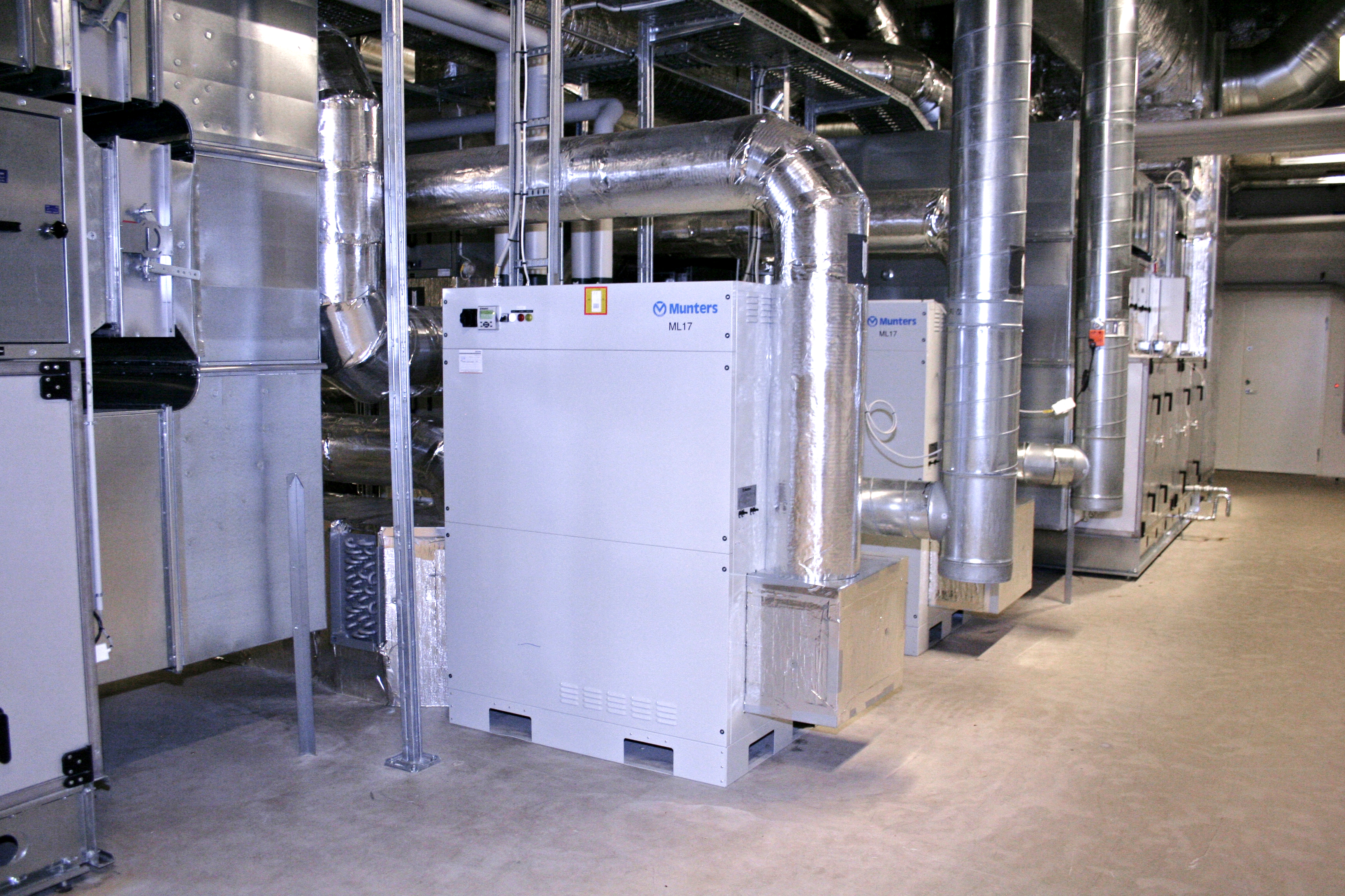 The State Archives store 3.5 billion documents placed in 270,000 plastic trays in shelf rack systems that would be 370 kilometers long if they were placed next to each other. An advanced barcode-controlled picking system ensures that the State Archives will be able to instantly locate and retrieve requested documents. In order to safeguard the irreplaceable documents, very precise and reliable indoor climate control is necessary. By controlling the relative humidity in all 70,000m3 with Munters desiccant dehumidifiers, the Archives fully comply with guidelines from the Heritage Agency of Denmark and the new DS/ISO11799 standard for storage environment. Seven Munters dehumidification systems are connected to the archive’s ventilation system and ensure that the relative humidity in the archives is kept within 30-50% RH all year round. (Max. accepted variation over a day is 3%). The system works with full recirculation and fresh air intake of approximately 10% to keep pressure. The temperature in the archives is kept constant between 14-18°C. 300,000+ installations The Danish State Archives is one of many examples where Munters desiccant systems are used to create the optimal climate without compromise. Munters’ vast experience with over 300,000 installations worldwide speaks for itself. The Danish State Archives was the first PPP project in Denmark (Public Private Partnering), where government and private companies have jointly initiated the building and after construction the goverment has signed a contract with a private firm for the next 30 years covering operation and maintenance, including Munters dehumidifying system.