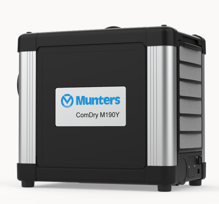 The small, highly efficient Munters ComDry M190Y desiccant dehumidifier was chosen. Two small circulating fans and the ComDry now quickly process laundry, with drying time reduced to only 8-10 hours, and the chaos has now come to an end. To simulate optimal drying conditions normally found outdoors during dry and windy summer days, Munters developed a system with circulating fans and an energy efficient, high-capacity desiccant dehumidifier. The circulating fans enhance water evaporation from the garment to the ambient air and then the dehumidifier removes the water from the air. Energy costs are kept to a minimum and a fast-drying cycle is achieved. At 4 Maj Kollegiet, a humidistat automatically registers the increasing relative humidity when wet laundry has been hung on washing lines and the two fans are activated. After approximately half an hour the ComDry starts the dehumidifying process that will last only until the clothes have been dried and the fan and dehumidifier automatically switch off. Michael Christensen confirms that everyone is very happy with the new drying concept and find the Munters solutions recommendable for all drying rooms where time is an issue.