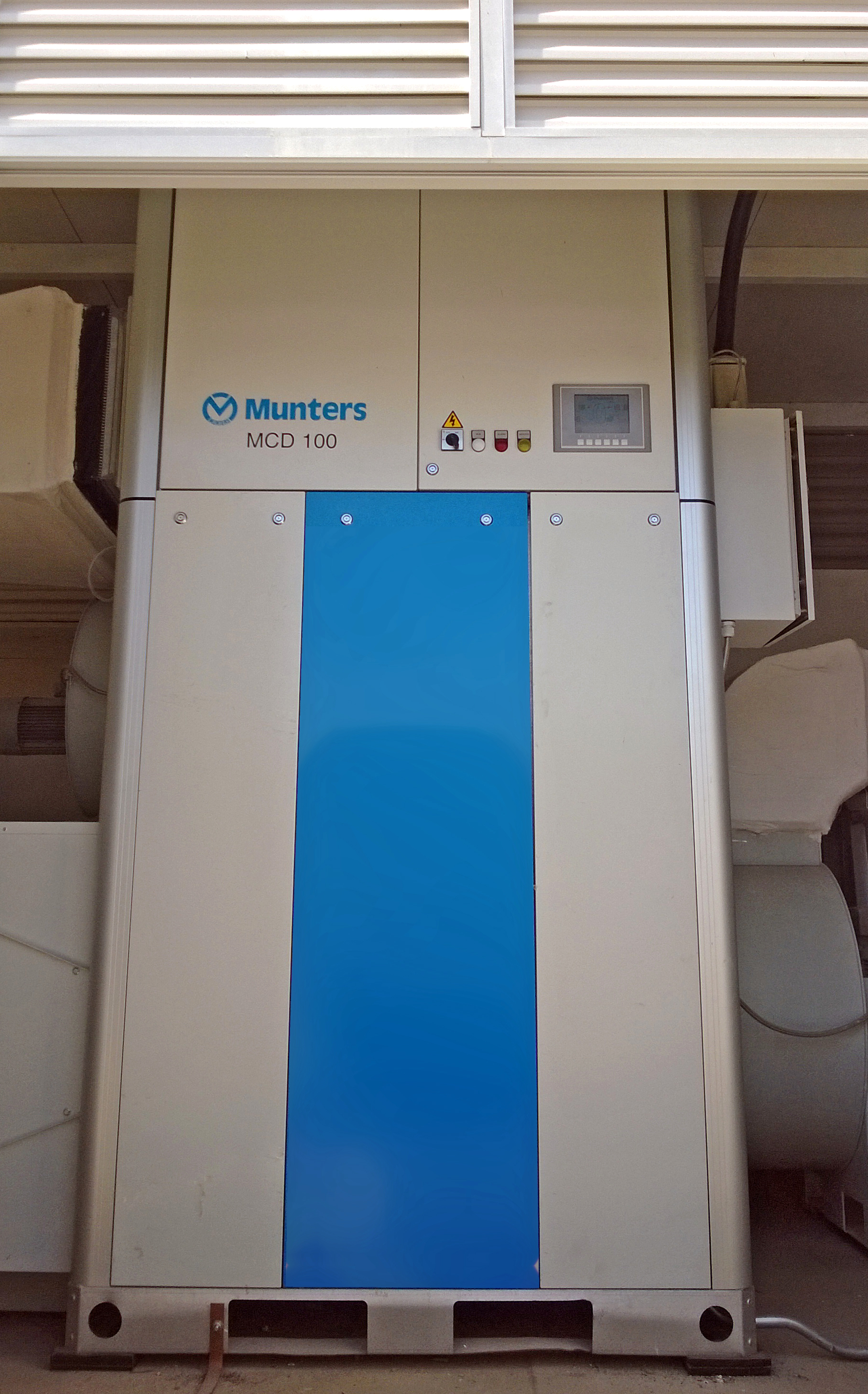 The University aspires to be amongst the leading universities in the Arab World and is renowned and recognized in its region and around the globe for offering comprehensive academic and professional programs of the highest quality. Between 400-500 students graduate from the university every year and 1,800 students live on campus. The students are offered excellent facilities, including a variety of sport arenas. When the Sharjah University sports complex was being renovated, installations were updated to become more modern and energy efficient, which included a new district cooling supply update. Dealing with swimming pool humidity issues, a desiccant drying system from Munters was chosen to create the perfect pool environment. Due to its location in the UAE, American University of Sharjah suffered each year from long periods with serious indoor climate problems. The combination of high relative humidity and high outdoor temperatures lead to an indoor climate that caused breathing problems for both swimmers and audience. Condensation was also a major issue as it created costly damage to building structure. In 2013 the sport complex building was one of many buildings on the compound that being refurbished. The University did not want to control the climate by installing a conventional cooling system in the swimming area, due to expensive operational costs and increased CO2 emissions. The existing cooling systems were removed and updated to district cooling to save energy and improve cooling efficiency. The swimming area climate had never been controlled, but a solution to the serious problem was found when the building was being renovated. A large amount of water evaporated from the pool surface every day, in fact, more than a ton a day. If not removed, it would damage building fabric and create an uncomfortable climate for swimmers. Upul Sumanasekara, MEP Engineer at the Project Management Office of American University of Sharjah: “We decided to find a solution that could control the climate around the swimming pool at 55% Relative Humidity with a year-round temperature of 28°C, and without additional cooling systems. We wanted a system that could be integrated with the AHU on site but we had very limited space on the roof.” A Munters MCD100 desiccant dehumidifier was selected to deal with the moisture load from the pool.
