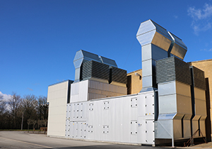With a massive focus on heat recovery and energy-saving ventilation and cooling solutions, NB Ventilation uses Munters' evaporative cooling solutions, for which completely carbon emission free and indirect evaporative cooling can often be supplied. This has also been the case at Danfoss A/S, Nordborg, where NB Ventilation has supplied a large number of systems over the last year for ventilation and cooling of both production and office premises Ambitious energy saving targets met way ahead of schedule Danfoss A/S has set a very ambitious target to halve the energy consumption for the heating of buildings by 2030. In isolation, the largest energy consumer is ventilation and the initial focus was therefore directed at this area. The company already had an air conditioning unit with an embedded FA6 humidifier from Munters and, based on the positive experience, it was natural for NB Ventilation to use this solution in connection with the replacement of older ventilation and cooling systems at Danfoss A/S. Simple and highly efficient systems NAt Danfoss A/S, NB Ventilation has installed new ventilation systems with double cross flow exchange and indirect evaporative cooling with a total effect of 2MW, distributed across approximately 20 systems. The largest two systems, each at 126,000 m³/h have replaced 12 smaller systems, which has resulted in major savings not only in terms of energy but also when it comes to the maintenance of motors, filter replacement, etc. In connection with the installation of the new system, it has already been possible to reduce energy consumption by 70%, and the 2030 target has already been met in Nordborg, but the upgrade process is continuing. In certain circumstances the systems run entirely without heat consumption all the way down to an outdoor temperature of -2°C, which has resulted in a very short repayment period of 1-3 years. This has been achieved through: • collection of waste heat from production processes, • double cross flow exchangers, • cooling using FA6 evaporative coolers, • Large ducts allowing for great variation in air volumes • VLT-controlled adaptation of air volume and • 150 mm insulation of ducts, 100 mm insulation of the systems, as they are all located outdoors. Cooling solution without any electricity consumption Waste heat is collected in the production premises and exchanged in the system with an efficiency of 90% during winter. Only when the outdoor temperature drops below -2°C does it become necessary to heat the injection air.Cooling requirements occur during summer, both with regard to employees but also due to the requirements set out in connection with the tolerances associated with certain production processes. In the event that cooling is required, the exhaust air from the premises is not exchanged, but automatic damper controls supply outdoor air via the evaporative coolers, cooling the air flow before it passes through the cross flow exchanger. Some of the advantages of using Munters' FA6 cooling in this way are that the air can be cooled directly, preventing the injection air to office and production premises from becoming damp. The only consumption for the FA6 humidifiers is a small pump and water which is recirculated and treated to prevent limescale deposits. The cooling requirements are covered completely without the use of conventional cooling surfaces and associated energy-intensive air condensers. Humidifier/cooling technology: Munters' FA6 evaporative coolers are designed especially for integration in ventilation systems and are based on nature's own cooling principle: cooling is generated by blowing air across a damp surface. The humidifier blocks are made from a non-organic and non-combustible material (GLASdek) that is sprinkled with water before air is injected through it with an air flow of between 0.5 and 30 m³/s. The nominal humidity is 65, 85 and 95% respectively and can be supplied both with and without the drop separation system DropSTOP™. With FA6, there is no risk of excess saturation of the air and legionella cannot occur. FA6 can be used for both direct and indirect evaporative cooling.