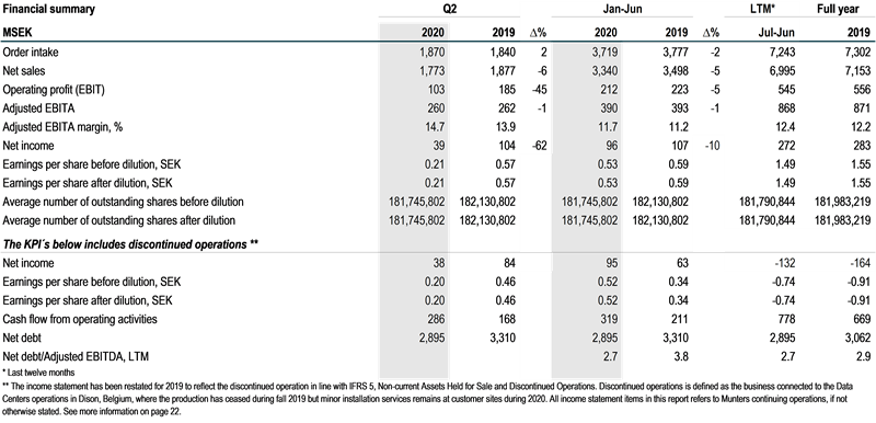 Munters January-June 2020 interim report – ”Next step in the strategy implementation”