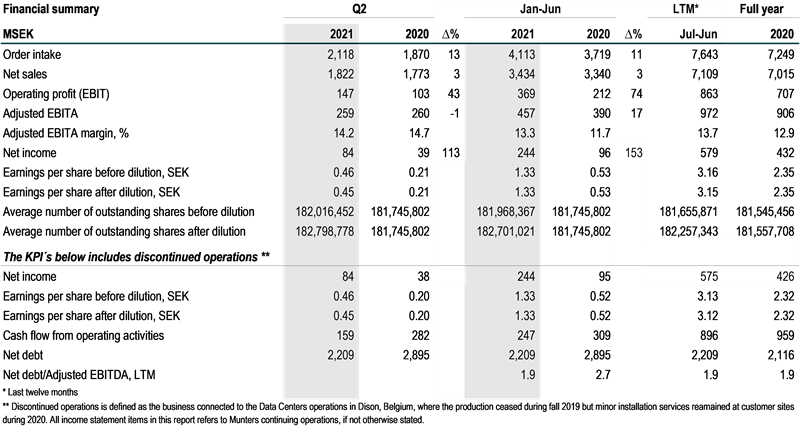 Munters Interim Report January-June 2021 - "Solid underlying demand, supply chain challenging"