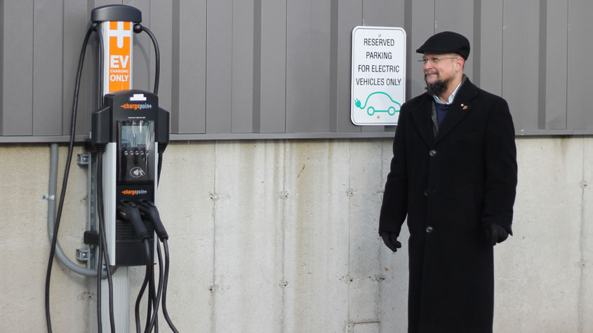 A total of five dual-port charging stations have been installed with the capacity to serve 10 cars.