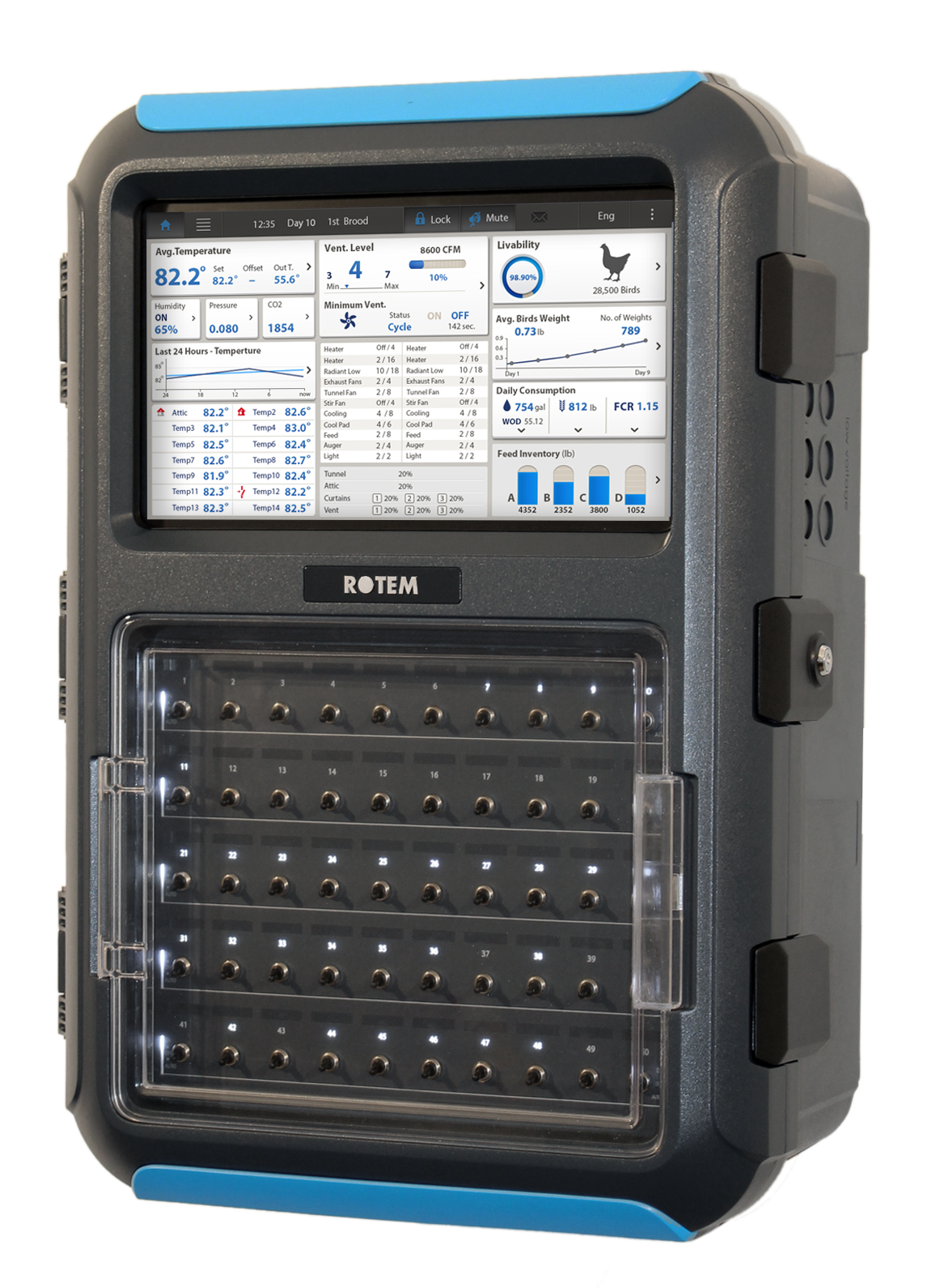 The Munters Rotem Platinum system is among the most advanced climate control units in the poultry industry, providing farmers with extensive management capabilities.
