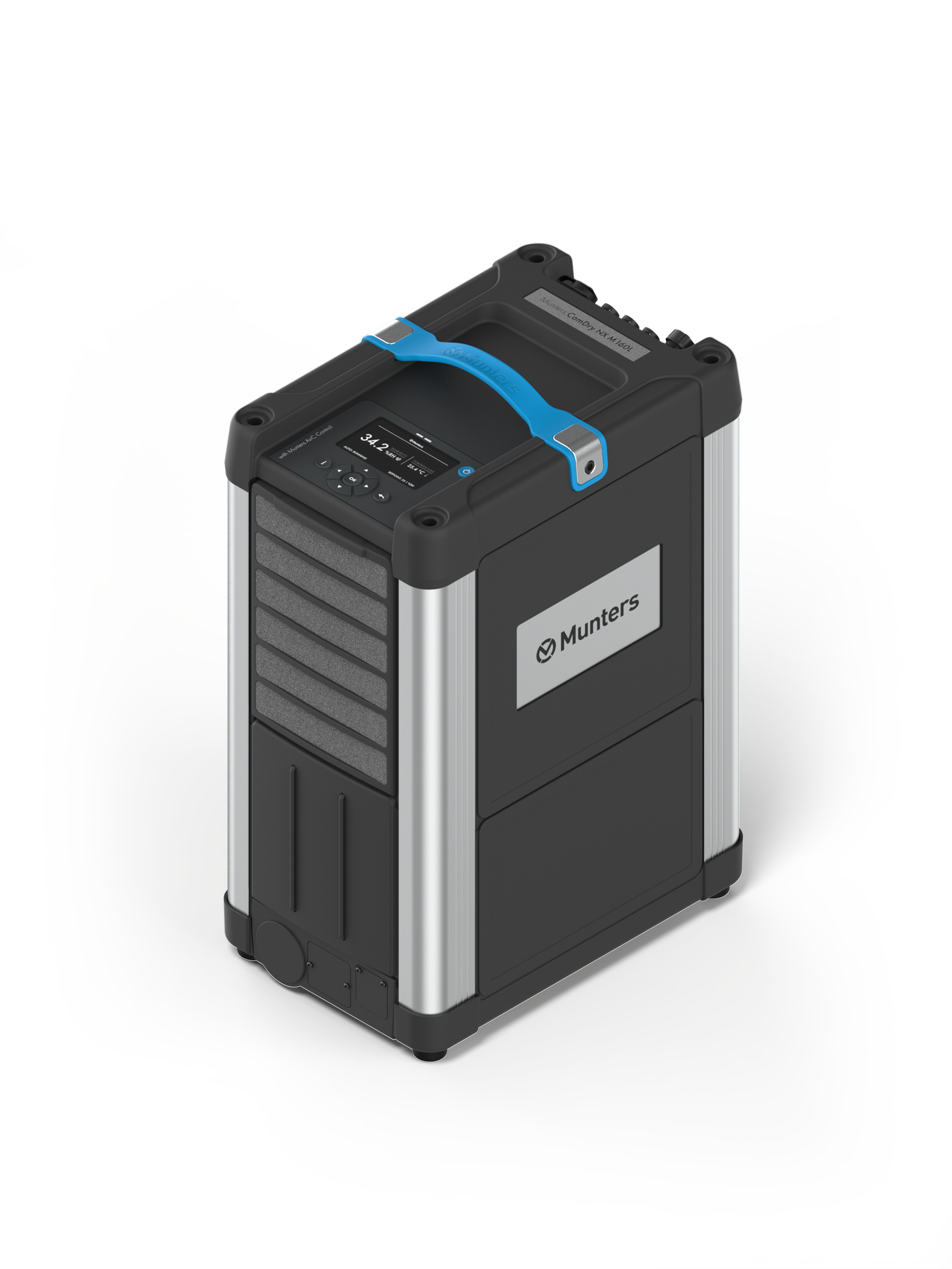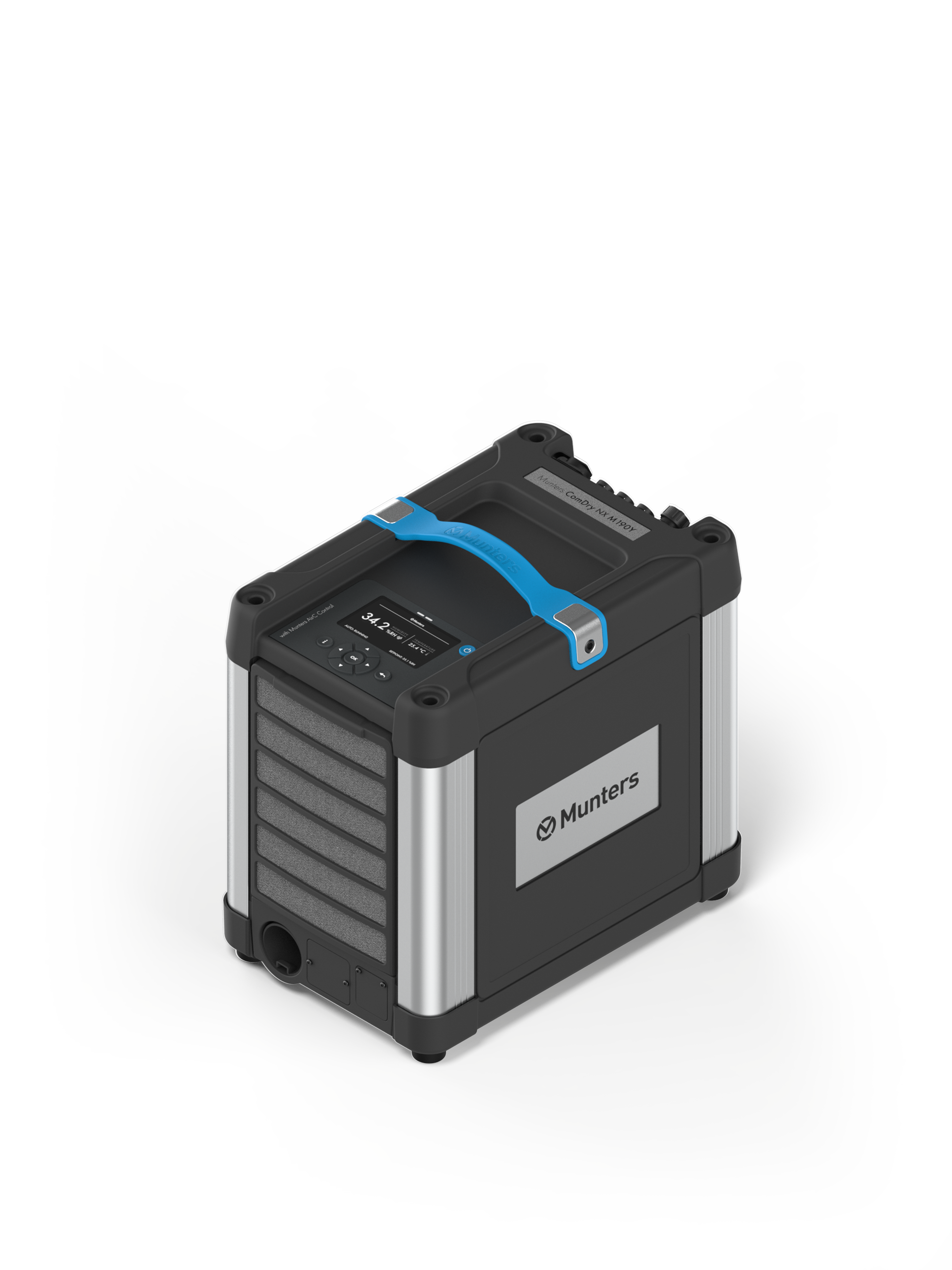Munters er stolte over å introdusere den grundig oppgraderte Munters ComDry NX-serien med ny styreenhet, inkludert Modbus og kablet kommunikasjon – en ekstremt pålitelig og portabel serie avfuktere med overlegen tørkekapasitet, lett design og 20 % høyere energieffektivitet enn de fleste konkurrenter. Alle enhetene har et plug-and-play-styresystem med grafisk display, kraftig drivmotor, AirC Wireless-tilkobling, servicevarsler og kWh-måler. Disse klasseledende avfukterne skaper det perfekte klimaet i forskjellige bruksområder.