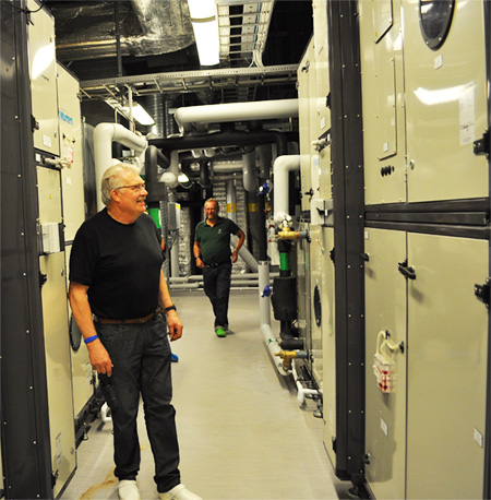 Badhuset har en 50-metersbassäng för motions-, tränings- och tävlingsbad, två undervisningsbassänger, familjebad med rutschkanor samt en relaxavdelning och ett gym. Det är en mycket aggressiv miljö ur ett fuktperspektiv. Enbart den stora bassängen innehåller 2,5 miljoner liter vatten och det finns krav på olika temperatur i vatten och luft i och omkring de olika poolerna. Till detta kommer stora glaspartier som ger svängningar i temperaturen beroende på hur solen står. För att skapa ett behagligt och kontrollerat klimat har Hylliebadet låtit Munters installera 9 stycken DanX simhallsaggregat och 4 stycken DanX komfortaggregat. Dessa håller temperatur och fukt på önskade nivåer i anläggningens olika delar. Valde DanX för hög energiåtervinning Konsulterna Andersson och Hultmark, som svarade för VVS-delen i byggprojektet, hade sedan tidigare goda erfarenheter av DanX simhallsaggregat från Rosengårdsbadet i Malmö. Badanläggningar med sina höga luft- och vattentemperaturer är mycket energikrävande och har behov av stora luftombyten. DanX är ett kompaktaggregat som avfuktar, ventilerar, värmeåtervinner och styr temperaturen. Effektiva korsvärmeväxlare och värmepump gör att energianvändningen blir extremt låg. När det inte finns något värmebehov i luften, används överskottet till att värma bassängvattnet. Den optimala energiåtervinningen gjorde därför DanX till ett självklart val för Hylliebadet. Sten Andersson som är driftsansvarig för Hylliebadet berättar Vi förväntar oss runt 350 000 besökare om året som vill ha det varmt och skönt i vattnet men samtidigt en behaglig temperatur i luften. De olika poolerna ligger i stängda rum vilket gör att vi kan styra klimatet till de olika verksamheternas behov. Temperaturen i 50-metersbassängen ligger på 27°C grader. I luften ligger vi alltid 2°C över vattentemperaturen vilket innebär 29°C det här fallet. Här håller simskolor, motionärer och tävlingssimmare till. Vi har en fin läktare och arrangerar även tävlingar. Familjebadet är den delen som är populärast bland småbarnen och här är det alltid mycket besökare. I samma utrymme finns en familjepool, en lekpool och en varmpool som alla håller olika temperatur, mellan 31-34°C. Vattenavdunstningen är hög och det krävs många luftombyten. I vår rehabpool håller vi ännu varmare, 34°C i luften och 30°C i vattnet. I gymmet är det helt andra förutsättning som råder. Det finns inget omgivande vatten här och vi vill ha svalare luft, runt 20-22°C. Här har vi därför ett DanX komfortaggregat som ventilerar luften. Vår verksamhet ställer alltså stora krav på ventilationen. Totalt kan DanX-aggre-gaten behandla runt 124 000 m3 luft i timmen. Tack vare steglösa fläktar kan vi köra nattdrift vilket sparar ytterligare energi. Enkelt underhåll och bra samarbete Det underhåll som krävs är minimalt i form filterbyten. Jag är också glatt överraskad över hur tysta de är. Det är positivt för oss som arbetar med driften och ofta befinner oss i och omkring utrymmena för aggregaten. Samarbetet med Munters fungerar mycket bra, både när det gäller tekniska diskussioner och service. Det är enkelt att ringa och är det något så kommer Munters tekniker direkt. Vi är helt enkelt mycket nöjda med både lösningen och samarbetet, avslutar Sten. Hylliebadets DanX-park Totalt 13 stycken DanX-aggregat förser Hylliebadet med fräsch luft. Nio aggregat levererar klimatiserad luft till de olika pooldelarna, ett komfortaggregat försörjer kassa och reception, ett aggregat ventilerar undertaket för att skydda konstruktionen, ett aggregat ventilerar utrymmet för vattenreningen och en DanX3 ventilerar gymmet.